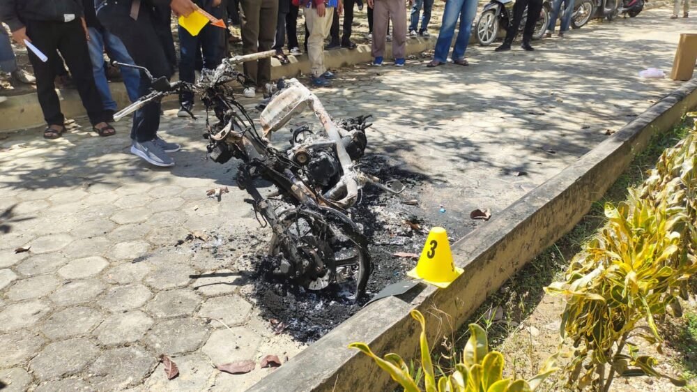 Motor milik mahasiswa Jurusan Teknik Elektro inisial JAS (22) itu diduga dibakar sekitar pukul 04.30 WITA.