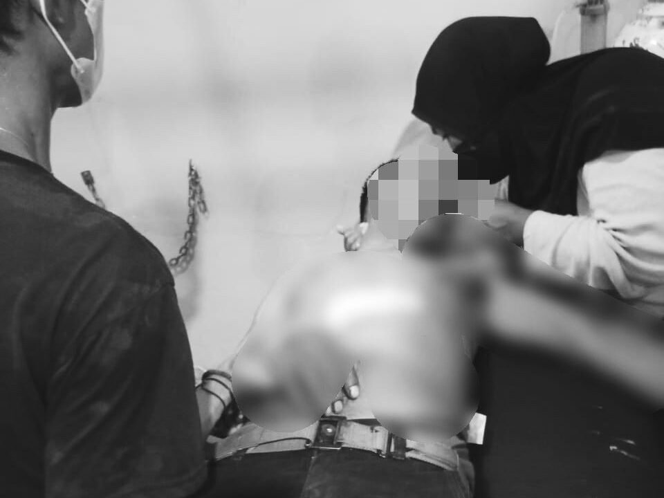 Korban saat dilarikan ke rumah sakit setelah ditikam oleh temannya sendiri di Kendari. Foto: Istimewa.
