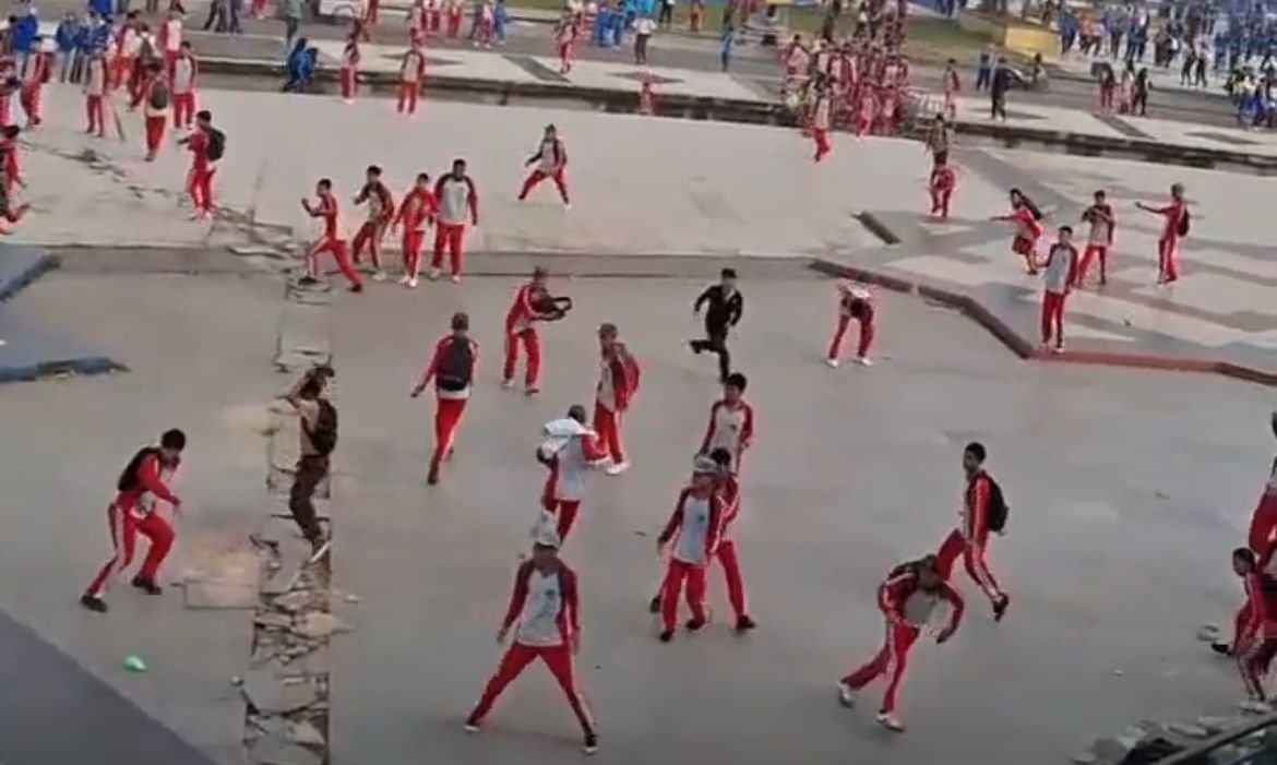 Terlihat salah satu kubu didominasi pelajar yang mengenakan pakaian olahraga berwarna putih merah, diduga mereka adalah siswa asal salah satu Sekolah Menengah Kejuruan (SMK) di Kendari.