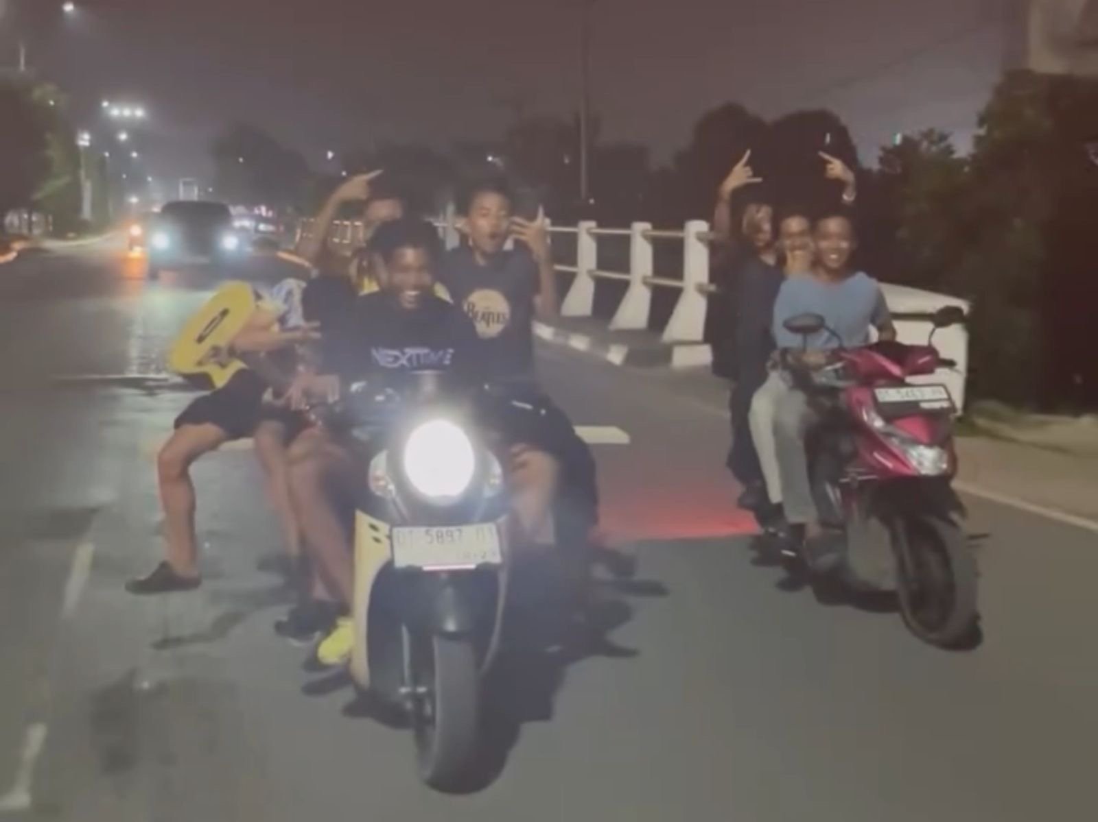 Sementara dalam video yang diterima Kendariinfo, tampak 1 sepeda motor Honda Scoopy berboncengan 5 orang. 2 orang terlihat duduk di bagian papan kaki, 1 orang memegang gitar, 1 orang duduk di tengah, dan 1 orang lainnya mengendarai sepeda motor tersebut.