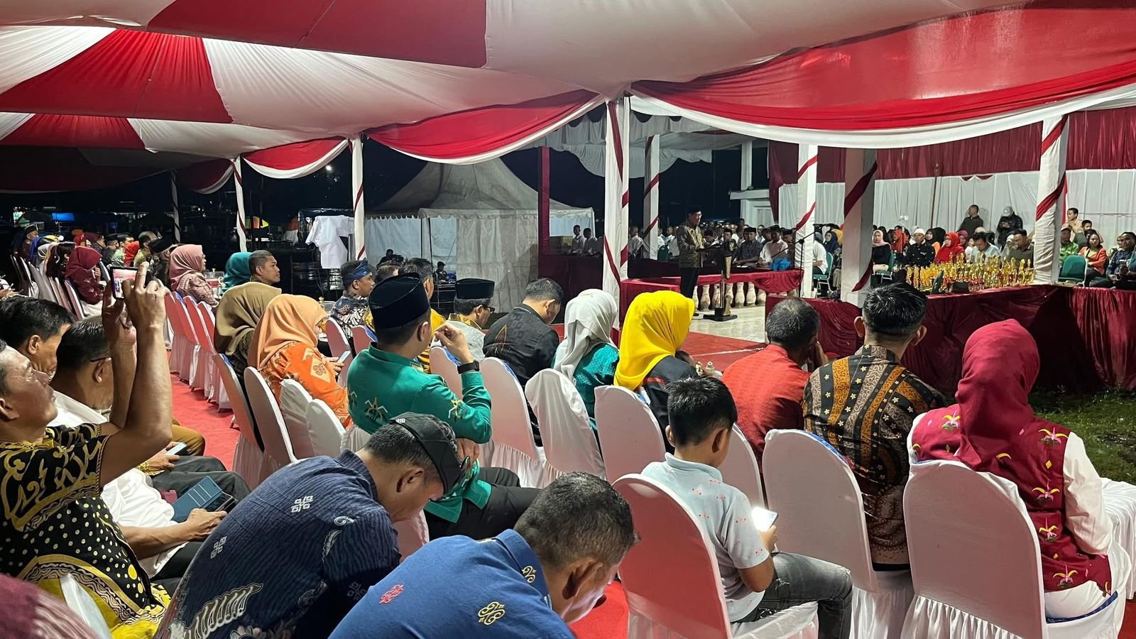 Malam semakin larut, namun suasana kekeluargaan tidak surut. Plt. Bupati bersama para tamu kehormatan berbaur dengan warga, menyalami satu per satu peserta, menandakan kedekatan antara pemerintah dan masyarakat.