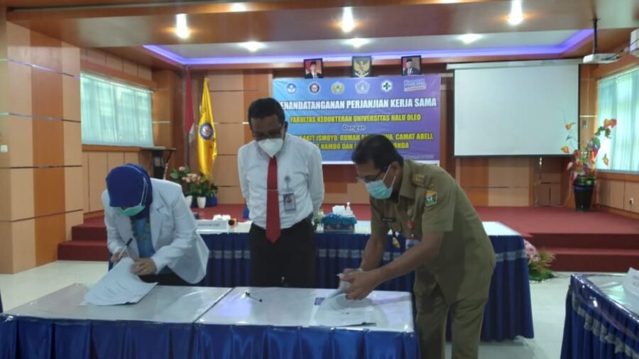 Untuk menciptakan, profesi ners yang profesional dan unggul, FK UHO melakukan kerja sama dengan berbagai layanan kesehatan di Sultra, yakni Rumah Sakit Jiwa (RSJ) Kendari, Rumah Sakit Ismoyo, Camat Abeli, Camat Nambo, dan Puskesmas Konda. Kerja sama itu ditandai dengan penandatanganan Memorandum of Understanding (MoU), Senin (1/11/2021).