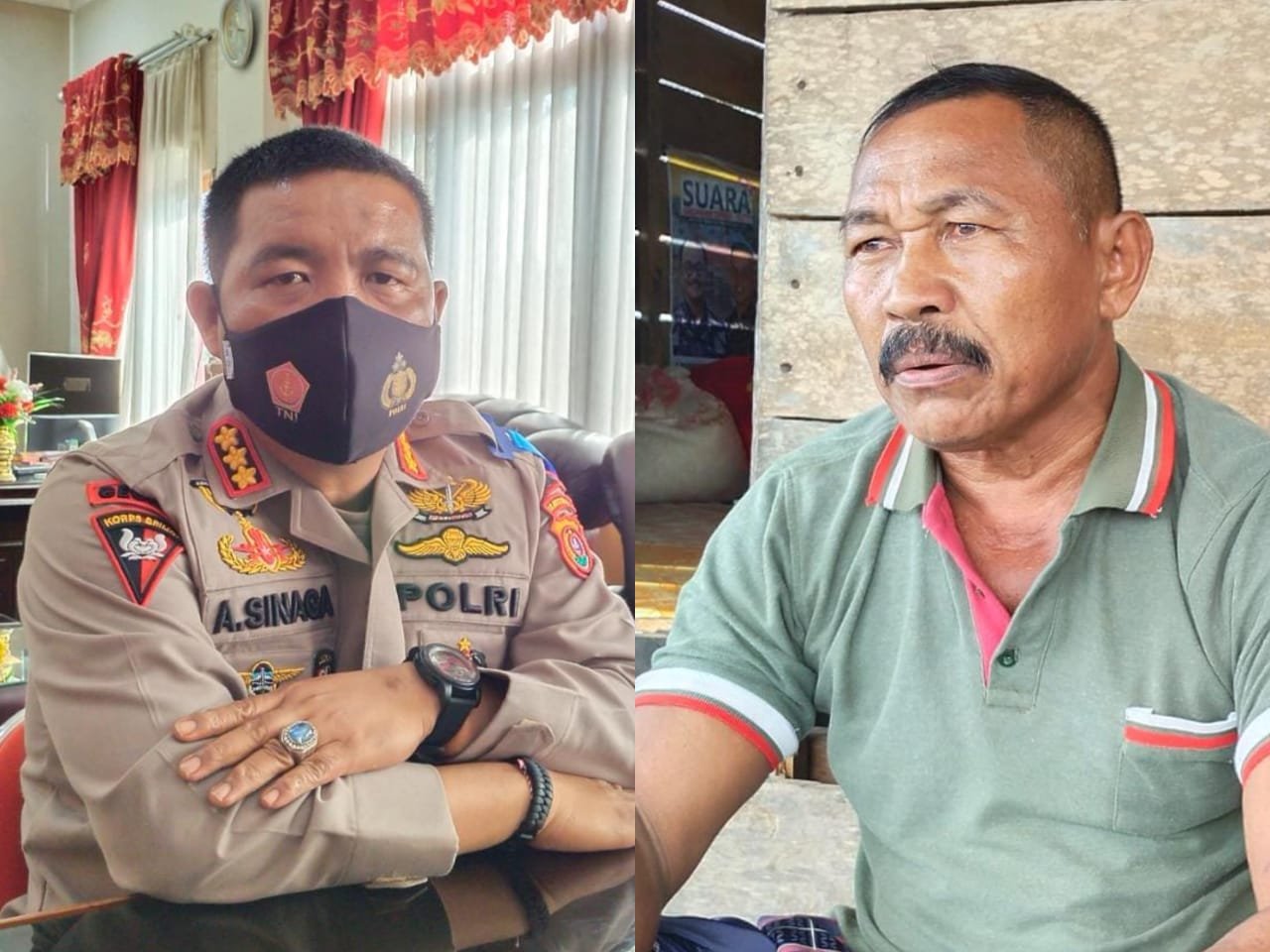 Dansat Brimob Polda Sultra, Kombes Pol Adarma Sinaga (kiri) dan Kades Puosua Jaya, Langa (kanan). Foto: Ferito/Kendariinfo. (20/4/2021).
