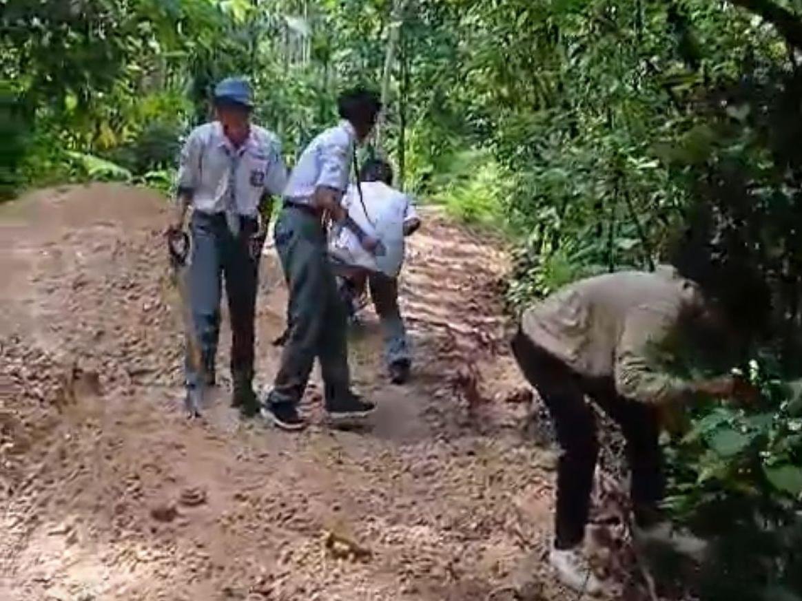 Ia mengatakan sebanyak empat orang siswa pun datang membawa sekop dan parang untuk membantu meratakan jalan tani itu. Ia mengaku kedatangan para siswa tersebut sangat membantu akses jalan untuk mobil.