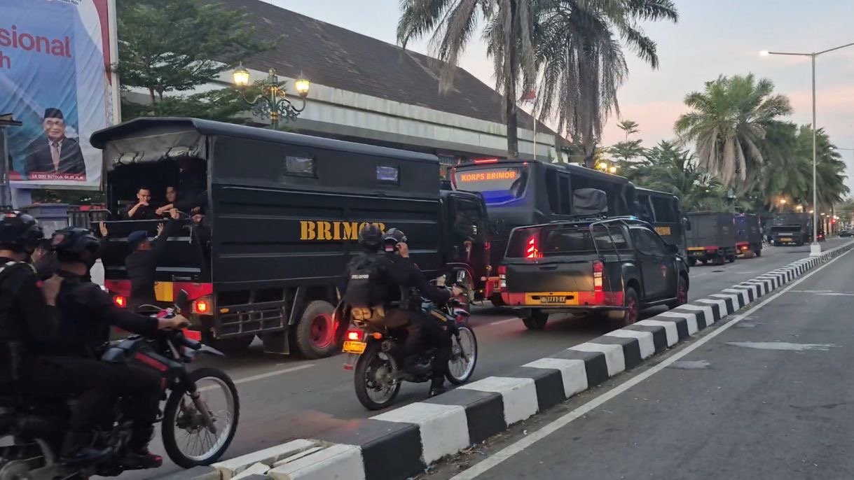 Situasi Terkini di DPRD Sultra Kondusif, Pasukan Pengamanan Ditarik dan Iring-iringan Kendaraan Tinggalkan Lokasi