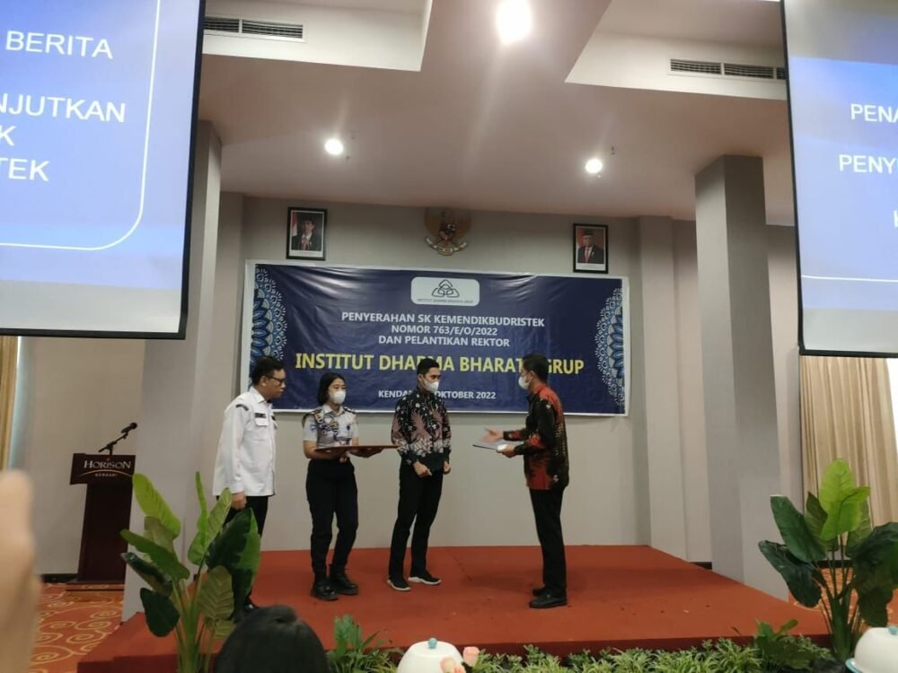 Penyerahan SK dan Izin Akademik Insitiut Dharma Bharata Grup Kendari. Foto: Istimewa.