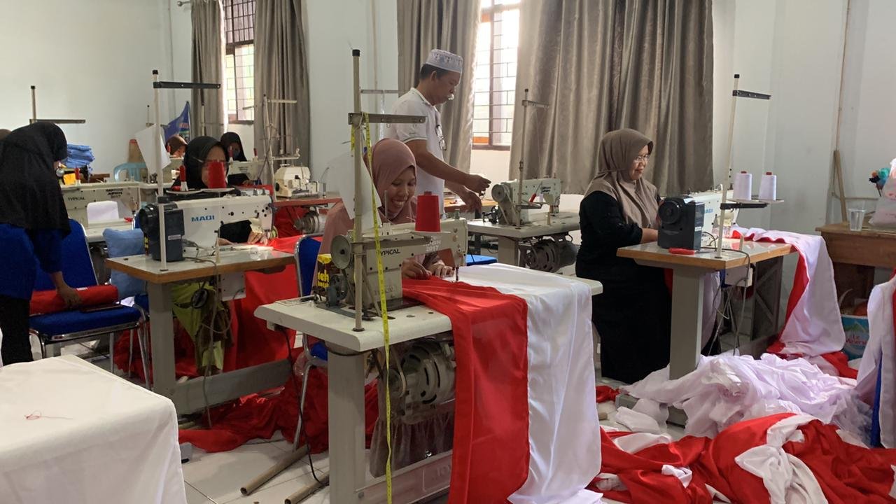 SMKN 4 Kendari Jahit Bendera 3.000 M untuk Dibentang Sepanjang 17 Km