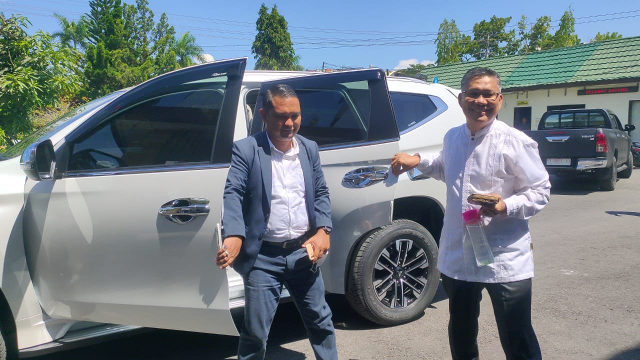 Pantauan Kendariinfo, mantan Wali Kota Kendari itu kembali menjalani pemeriksaan dengan pakaian yang sama. Ia tiba di Kejati Sultra menumpangi mobil DT 1914 LF bersama pengacaranya bernama Muh. Ridwan Zainal.