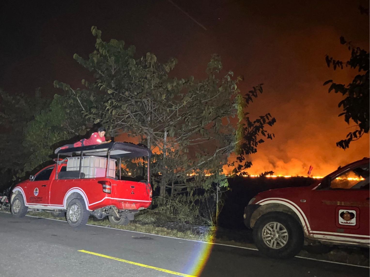 Taman Perlindungan Pelestarian Alam (PPA) atau Taman Nasional Rawa Aopa Watumohai (TNRAW) di Kecamatan Lantari Jaya, Kabupaten Bombana, terbakar pada malam hari. Foto: Istimewa. (4/9/2025).