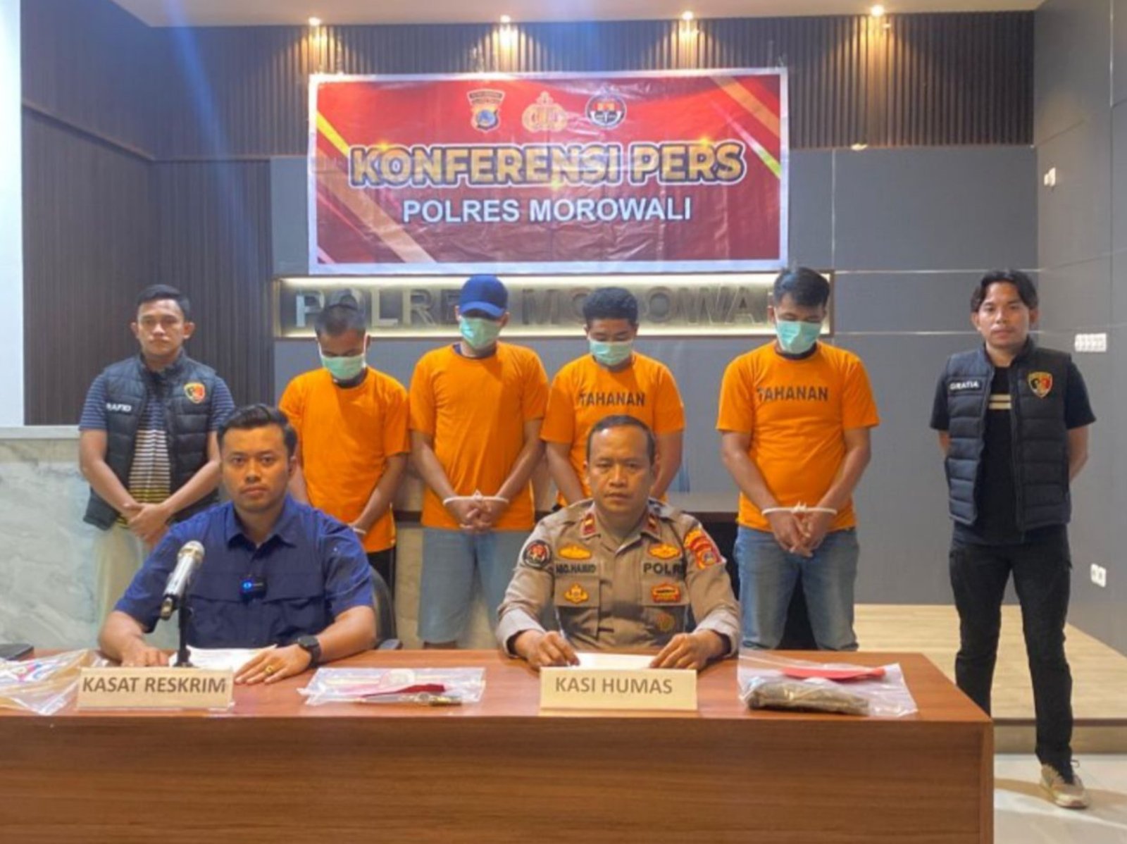 Kapolres Morowali, AKBP Zulkarnain, melalui Kasat Reskrim Polres Morowali, AKP Erick Wijaya Siagian, menjelaskan para tersangka masing-masing berinisial G (oknum polisi dari Polda Sulteng), J, S, dan R (ketiganya oknum sekuriti).
