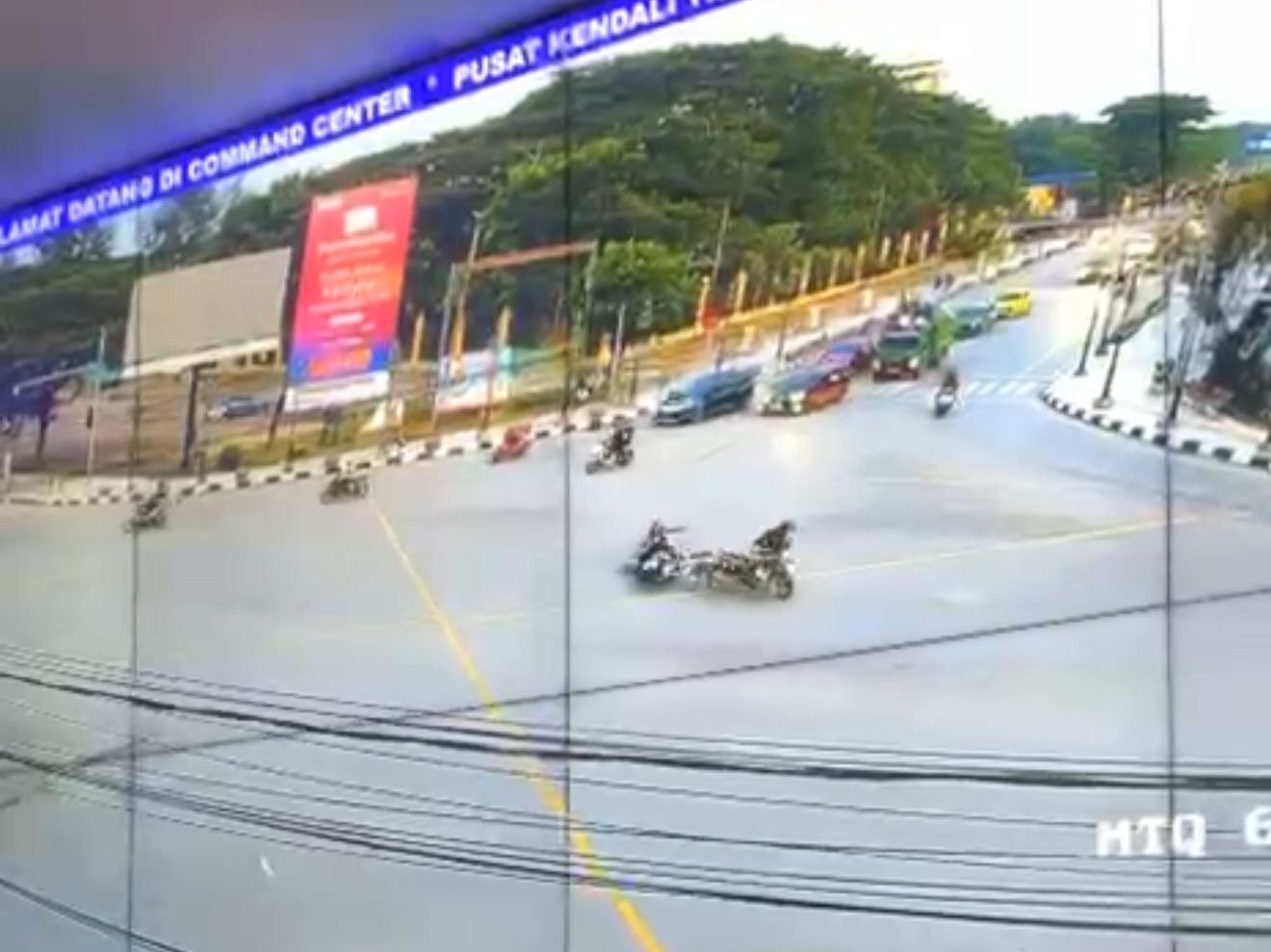 Kendari – Dua unit sepeda motor terlibat kecelakaan lalu lintas di perempatan lampu lalu lintas Eks MTQ, Jalan Abunawas, Kelurahan Pondambea, Kecamatan Kadia, Kota Kendari, Sulawesi Tenggara (Sultra), Kamis (18/12/2025). Insiden tersebut terekam kamera pengawas CCTV milik Call Center 112 Pemerintah Kota (Pemkot) Kendari.