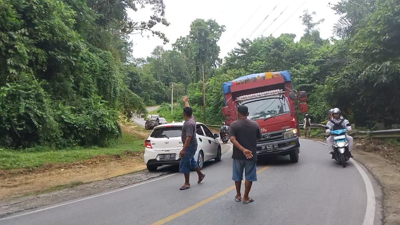 Peristiwa terjadi ketika truk dengan nomor polisi DP 8422 AJ itu tak mampu menanjak di tanjakan. Rem kendaraan diduga mengalami masalah, sehingga kehilangan daya cengkram, membuat truk sempat mundur ke belakang.