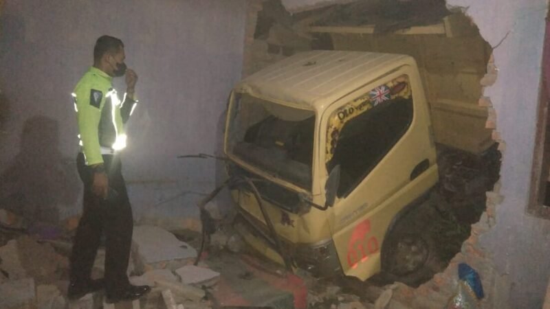 Truk yang terjun bebas itu kemudian menghantam rumah salah seorang warga berinisial WS (49). Walhasil, tembok rumah bagian ruang tengah hancur, dengan kepala mobil yang terlihat masuk ke dalam.