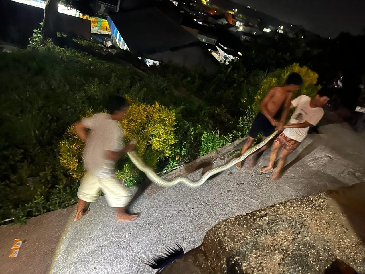 Beberapa warga kemudian berupaya mengamankan ular tersebut menggunakan alat seadanya. Proses penangkapan berlangsung hati-hati karena kondisi lorong yang gelap dan sempit. Setelah berhasil diamankan, ular itu ditempatkan di area aman sambil menunggu koordinasi dengan petugas terkait.