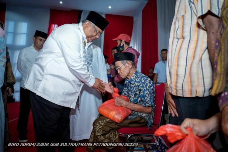Kolaka TimurGubernur Sulawesi Tenggara (Sultra), Ali Mazi menyerahkan ribuan paket sembako kepada masyarakat di Kolaka Timur (Koltim) sebagai upaya pengendalian inflasi di daerah tersebut, Minggu (9/4/2023).