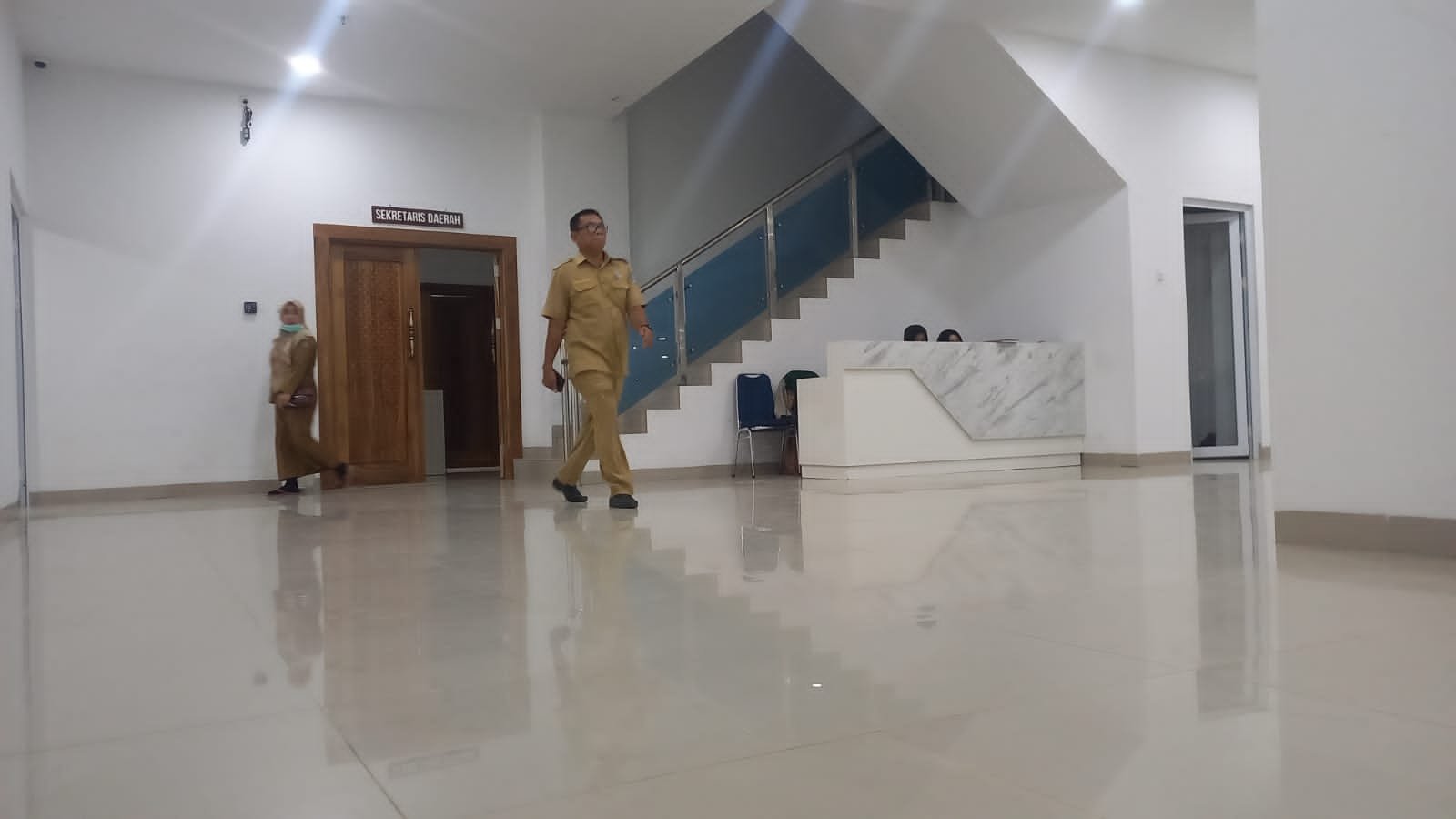 Ruangan Sekda Kota Kendari juga terlihat normal para pegawai masih lalu lalang di dalam ruangan tersebut. Di bagian depan Ruang Sekda Kota Kendari ada 3 petugas keamanan wanita yang masih berjaga.