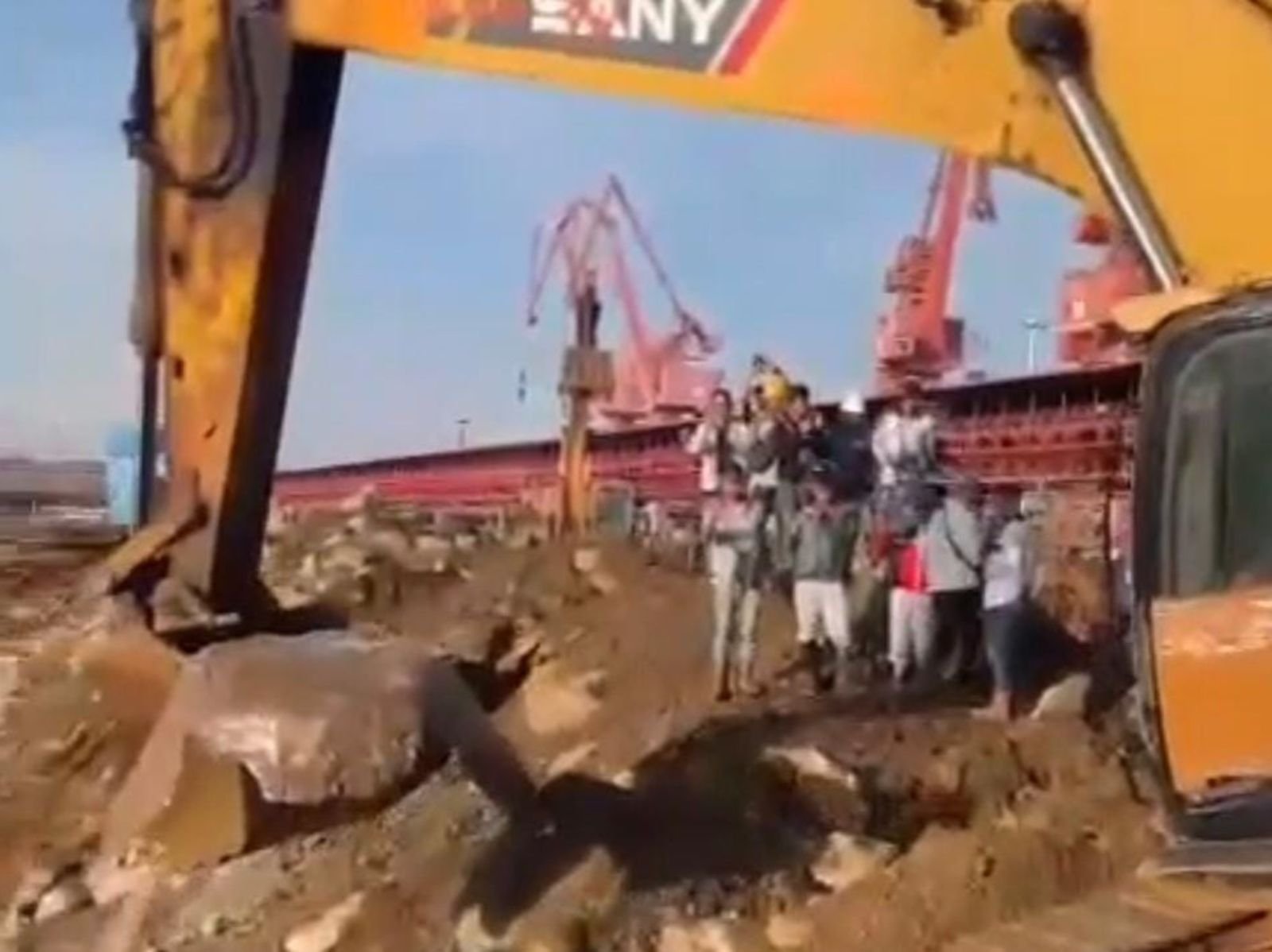Berdasarkan video yang beredar, terlihat sebuah alat berat jenis ekskavator mengangkat ikan tersebut dari laut menggunakan bucket. Ikan berwarna abu-abu itu kemudian diangkat ke darat dan menjadi tontonan para pekerja.