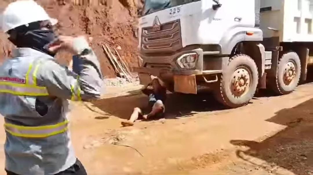 Konawe Selatan – Viral di media sosial seorang pria paruh baya di Kabupaten Konawe Selatan (Konsel), Sulawesi Tenggara (Sultra), berbaring di atas tanah. Tampak dari gelagatnya, pria paruh baya itu sedang menghalau beberapa unit truk tambang.