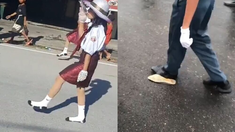 Dalam video yang diunggah akun TikTok @nurrul_islamiahj pada Minggu (14/8/2022), tampak sejumlah siswa SDN wanita mengikuti gerak jalan di siang hari. Dalam video itu, perekam menyoroti salah seorang siswa SDN yang tidak memakai sepatu dan hanya menggunakan kaos kaki.