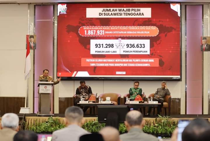 Data tersebut dibahas dalam rapat koordinasi yang dilaksanakan oleh Pemerintah Provinsi (Pemprov) Sultra dalam persiapan penyelenggaraan Pemilu 2024 di Claro Hotel Kendari, Senin (15/1/2024).