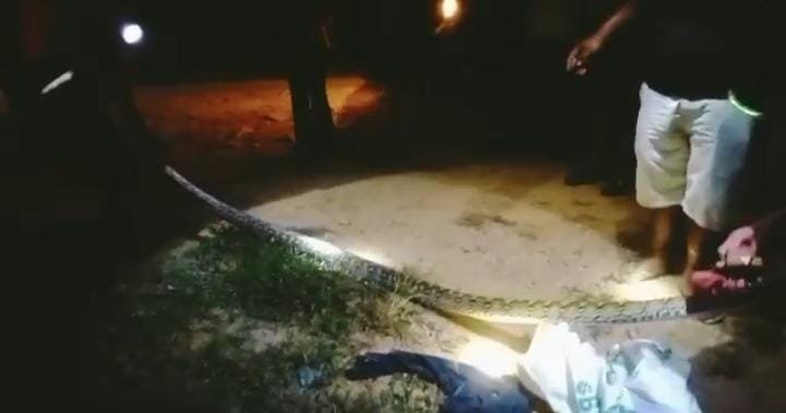 Kendari – Ular piton sepanjang tiga meter ditemukan warga di Jalan Banteng, Kelurahan Rahandouna, Kecamatan Poasia, Kota Kendari, Sulawesi Tenggara (Sultra) pada Minggu (8/1/2023) sekira pukul 21.00 Wita.