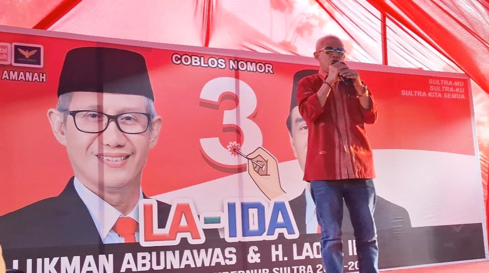 Kendari – Calon Gubernur Lukman Abunawas-Laode Ida (LA-Ida), menggelar kampanye perdana di Lapangan Torada, Kecamatan Puuwatu, Kota Kendari, Kamis (26/9/2024).