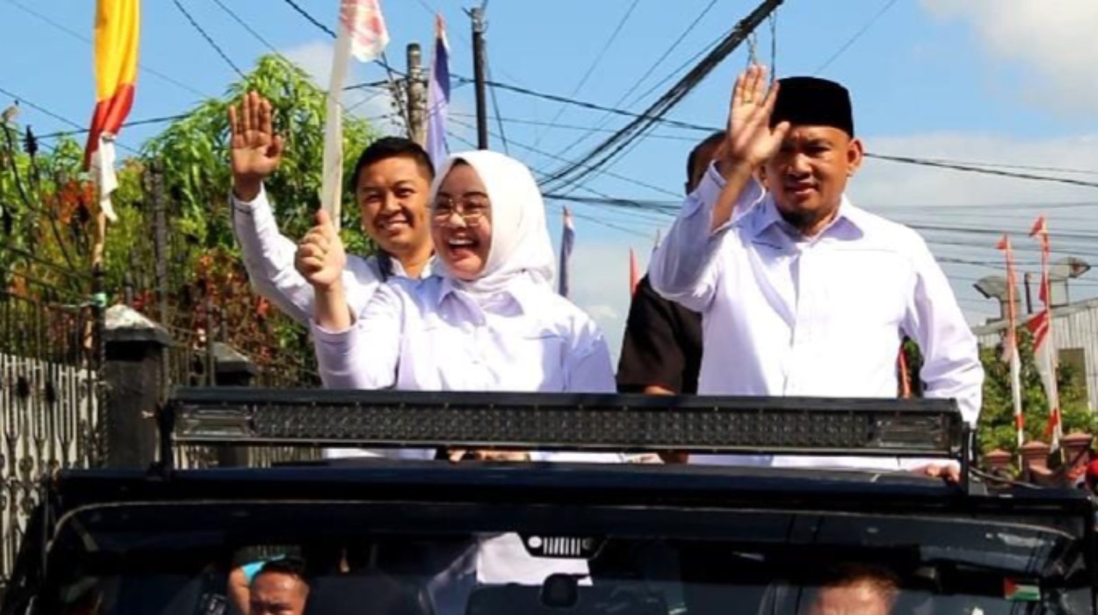 Dalam perjalanan, Siska dan Sudirman tak henti melambaikan tangan dan menyapa seluruh warga Kendari yang telah berdiri di tepi jalan sembari mendokumentasikan perjalanan mereka ke KPUD Kendari.