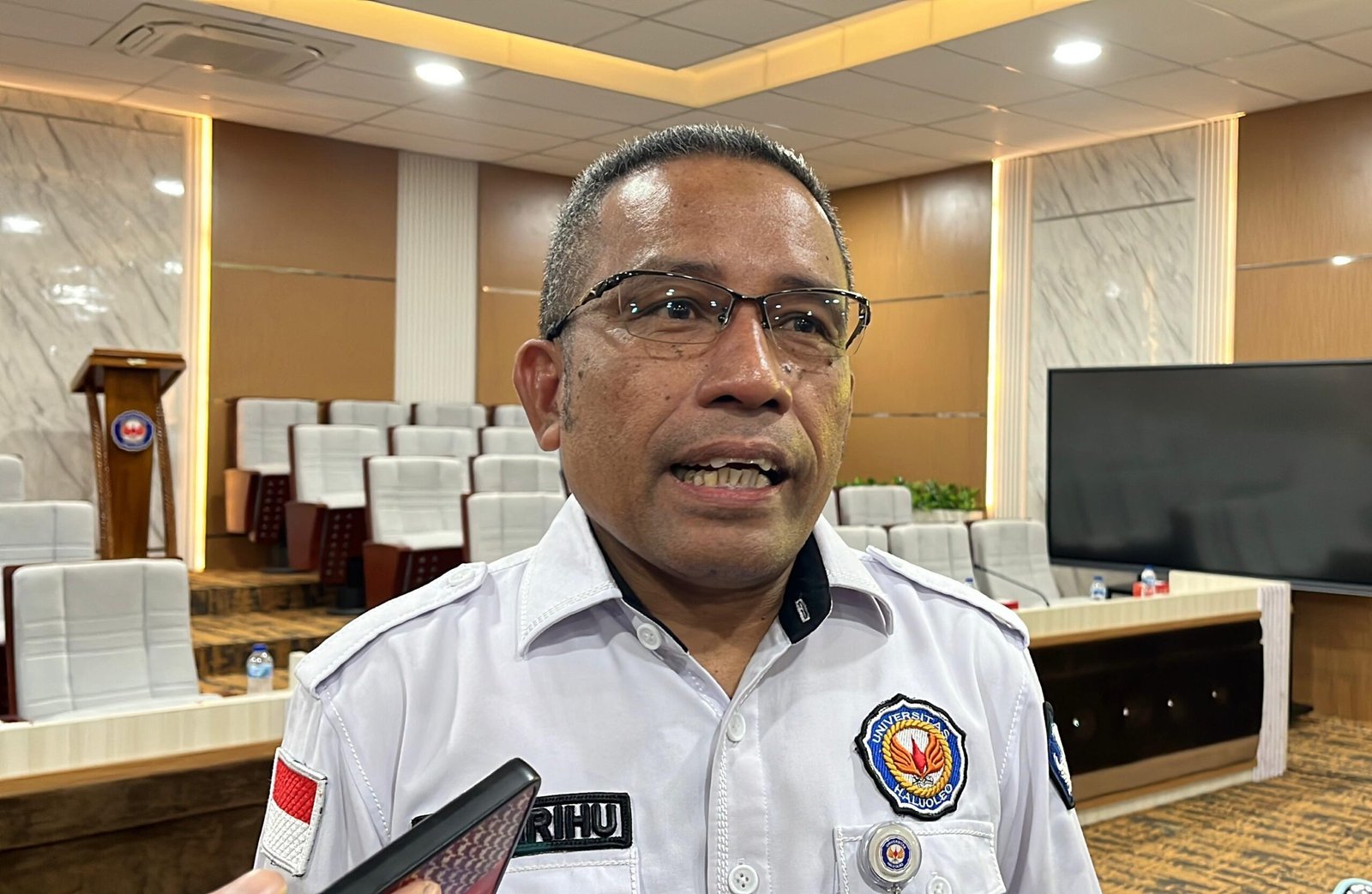 Rektor UHO Kendari, Prof. Muhammad Zamrun Firihu saat diwawancarai awak media. Foto: Hasmin Ladiga/Kendariinfo. (30/6/2025).